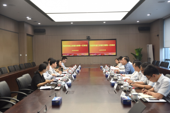 会上,徐斌对周宏总经理、沈晓驰行长一行的到访表示欢迎。他表示,交银租赁作为国内金融租赁行业的领军者,近年来在服务国家战略、支持实体经济发展等方面取得了积极成效,并聚焦新赛道积极推进转型发展。江苏银行与公司合作历史悠久,近年来,双方在同业融资、自贸区美元业务方面合作势头良好,希望双方能充分发挥银行、租赁优势,在做大做强同业融资的同时,在业务互荐、资产转让、开立信用证、债券承销等领域积极开拓合作。