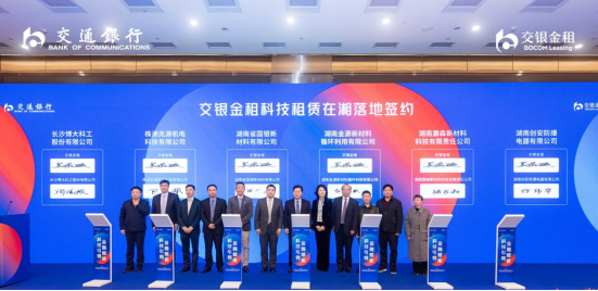 11月21日,交通银行湖南省分行举办湖南省科技型企业金融政策及服务分享活动暨交银金租科技租赁在湘落地签约仪式。交通银行首席专家,交银金租党委书记、董事长徐斌,交通银行湖南省分行党委书记、行长刘鹏涛出席签约仪式并发表致辞。交银金租党委委员、副总裁、资深专家吴家骏代表公司与相关企业签约。