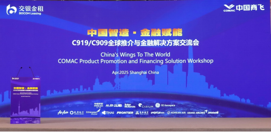 4月24日至25日,由交银金租主办的“中国智造・金融赋能——C919/C909全球推介与金融解决方案交流会”在上海成功举行。交通银行党委委员、副行长殷久勇,交通银行首席专家,交银金租党委书记、董事长徐斌,中国商飞公司909系列总师、工程总师陈勇出席会议并致辞。交银金租党委委员、副总裁、资深专家吴家骏,中国商飞公司营销委副主任、营销中心副总经理岳云峰出席会议。